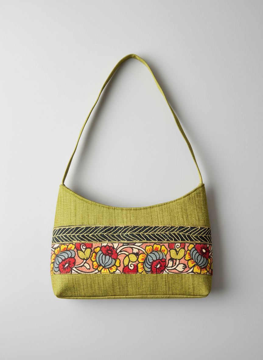 Elevate your evening look with the Srikalahasti Style Kalamkari Art handbags & Clutches. Handcrafted with traditional Kalamkari artistry from the heart of Srikalahasti, these bags and clutches feature intricate mythological motifs, vibrant colors, and nature-inspired designs. Each piece is a testament to ancient Indian craftsmanship, making them the perfect fusion of cultural heritage and modern style. Whether attending a wedding, a party, or any special event, these evening bags and clutches add a unique touch of elegance and storytelling to your ensemble.